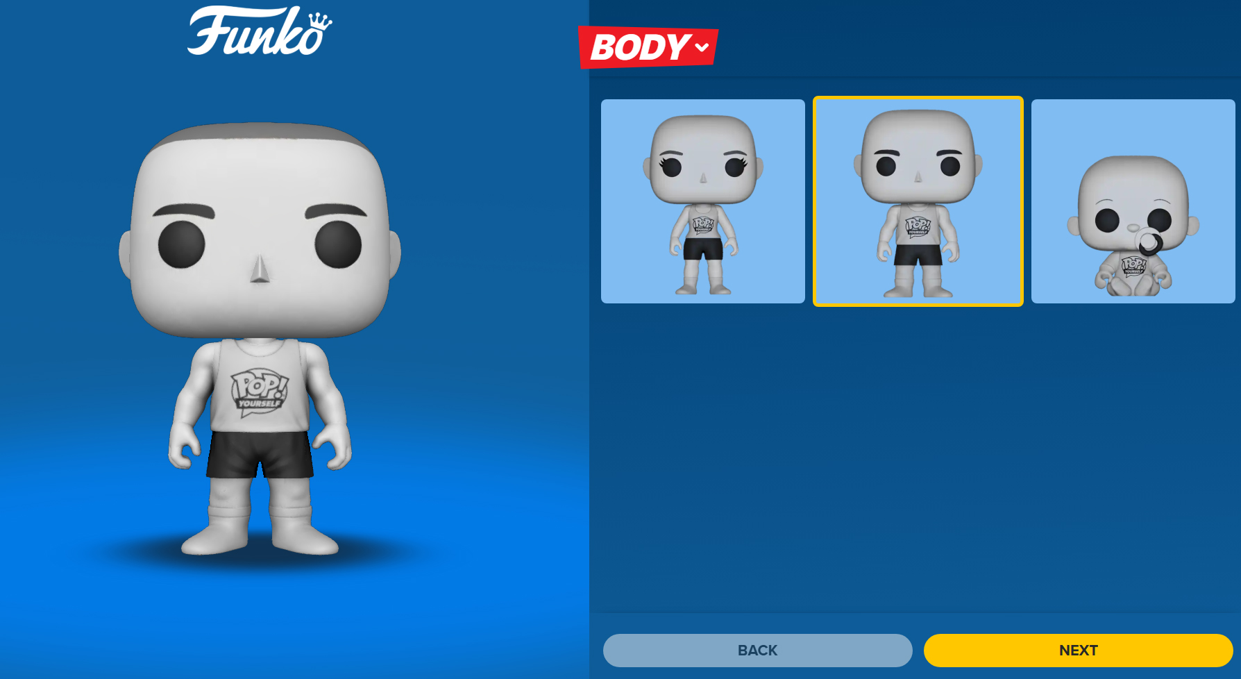 Vous définissez ensuite la silhouette de votre figurine : homme, femme ou bébé.