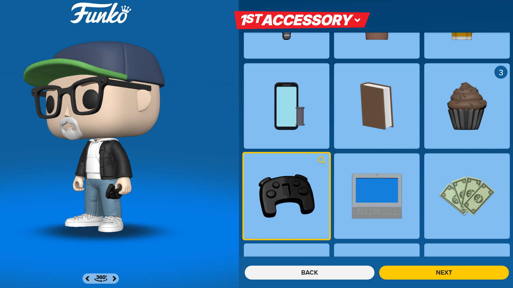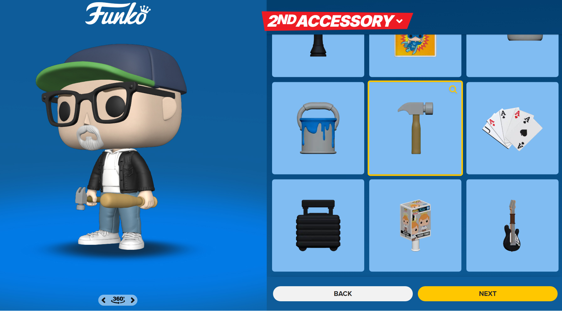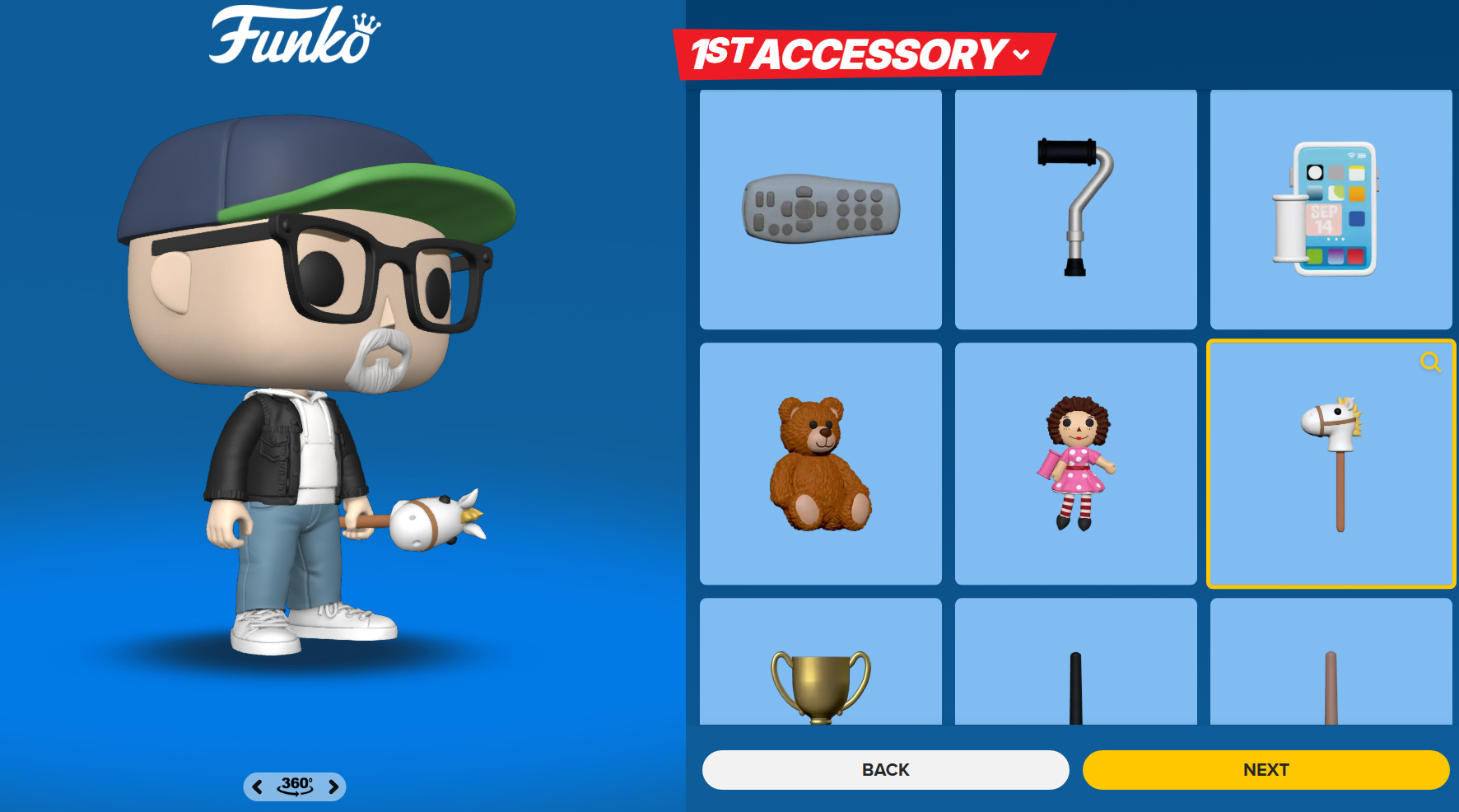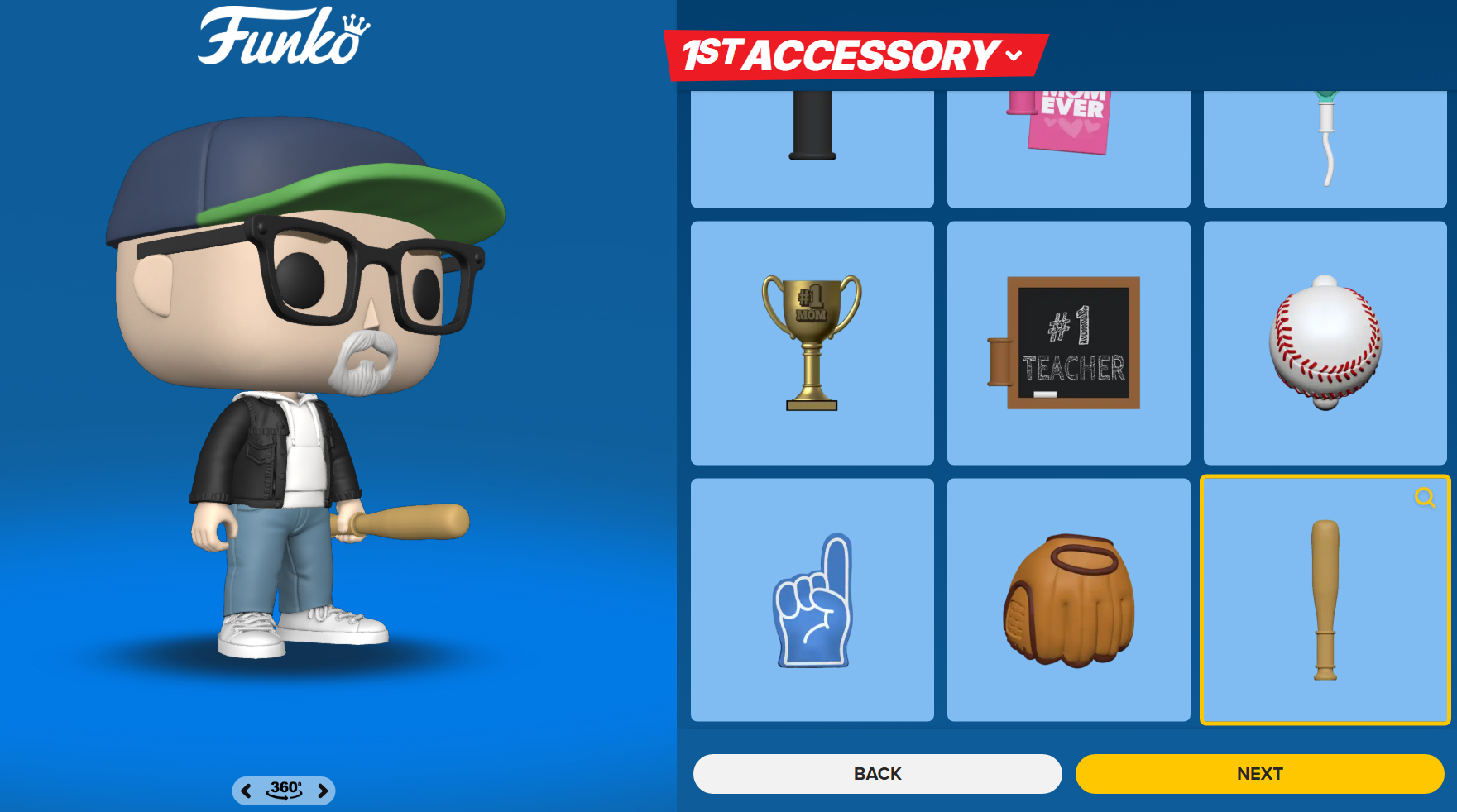 Enfin, vous pouvez choisir un accessoire, parmi ceux liés au sport, à la bijouterie, ou je ne sais quoi encore. Bouquet de fleur, nounours, cape de super-héros, télécommande, valise, poêle à frire, glace ou... batte de baseball...manette de jeu...
